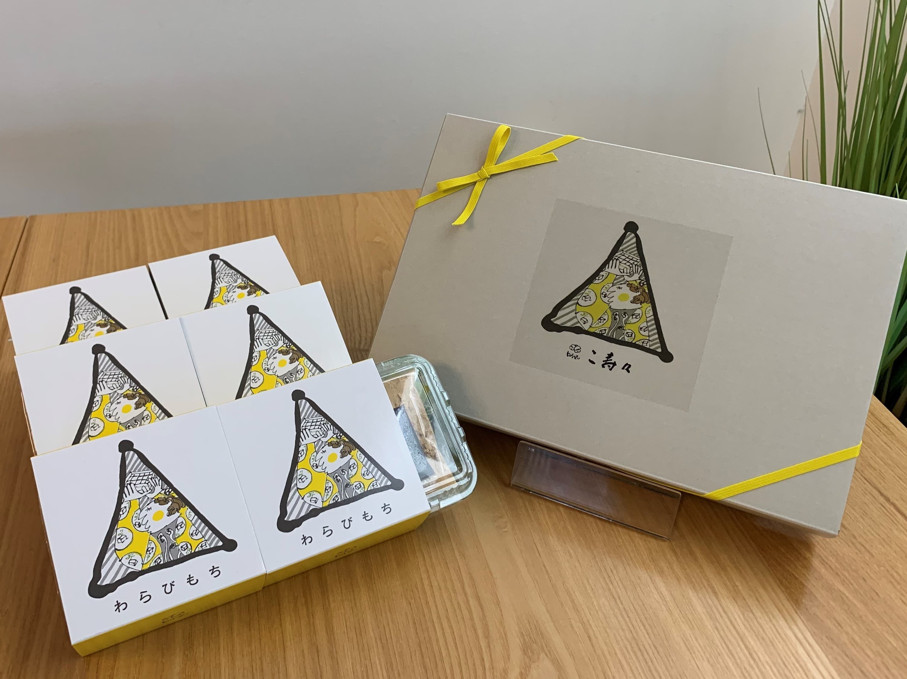 こ寿々のわらび餅は、生産希薄な本わらび粉を使い、昔ながらの製法で毎日製造しています。銅鍋でじっくり練り上げる素朴な手作りわらび餅は、独特の弾力ととろけるような食感を十分に味わっていただけます。